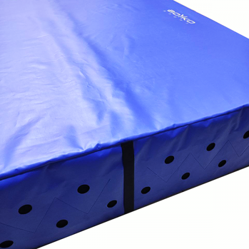 Маты предназначены для проведения безопасных тренировок. Отверстия по бокам обеспечивают быстрый выпуск воздуха при приземлении, что снижает эффект «пружины» и обеспечивает более «глухое» и мягкое приземление, предотвращая отскоки и травмы. Чехол закрывается с одной стороны на липучку "Велкро", что позволяет достать внутренний поролон при необходимости.